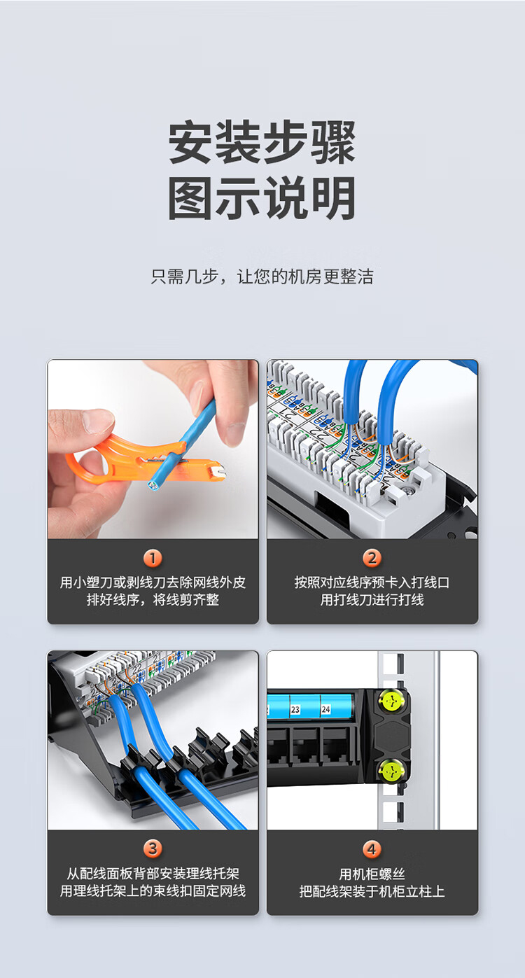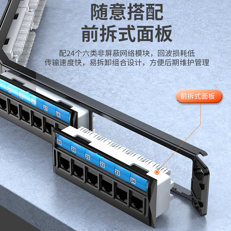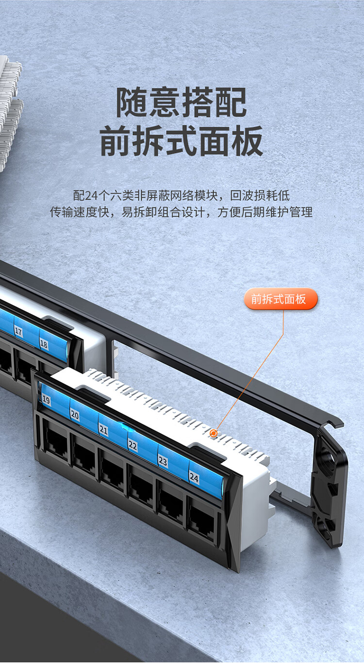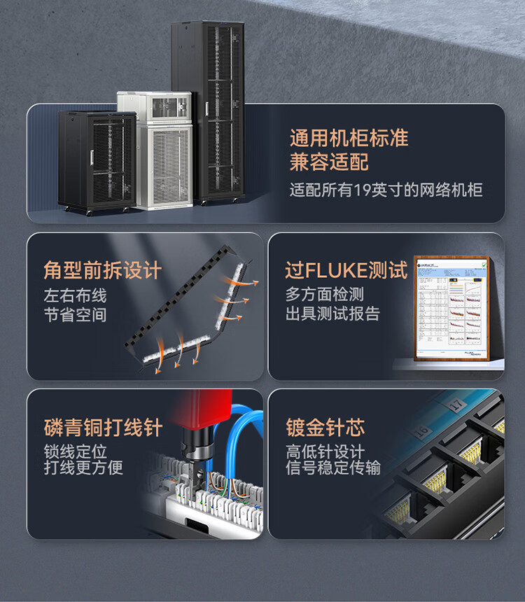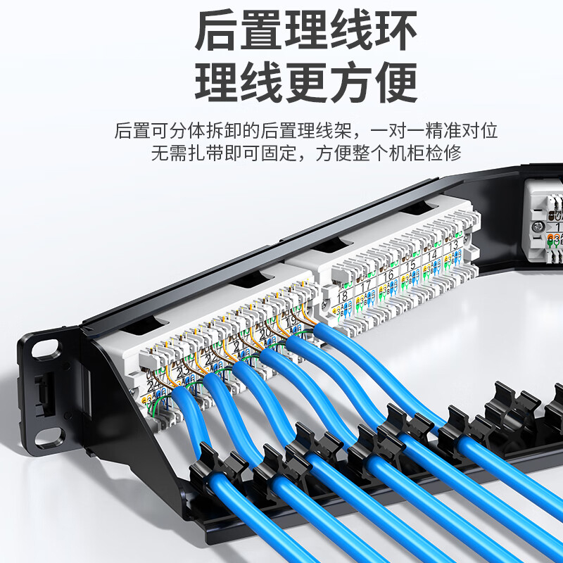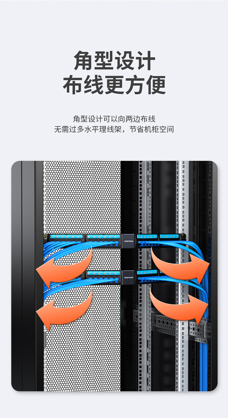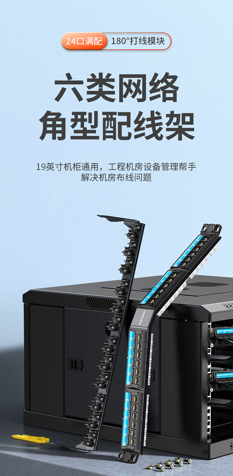 六類網(wǎng)絡(luò)角型配線架,24口滿配,180°打線模塊,19英寸機(jī)柜通用,工程機(jī)房設(shè)備管理幫手。角型前拆設(shè)計(jì),左右布線,節(jié)省空間。