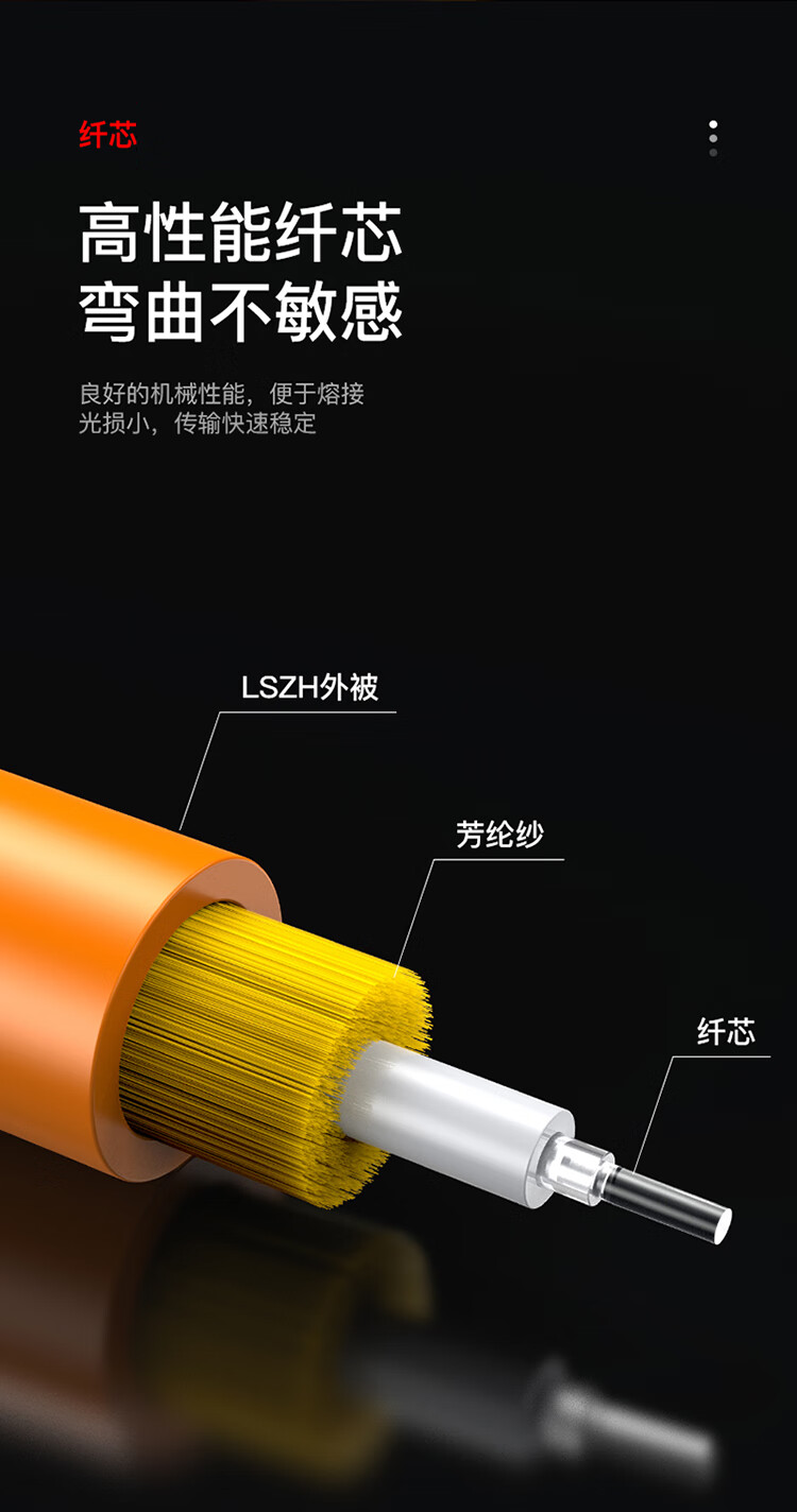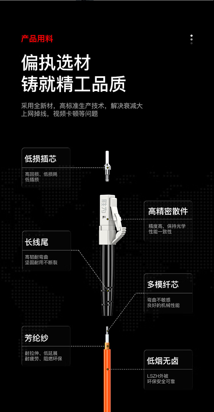一體工藝,長線尾保護(hù),堅(jiān)固耐用不斷裂;采用高品質(zhì)陶瓷插芯,數(shù)據(jù)互換性穩(wěn)定,耐插拔次數(shù)高,性能穩(wěn)定可靠;纖芯彎曲不敏感,良好的機(jī)械性能,便于熔接光損小,傳輸快速穩(wěn)定;環(huán)保低煙無鹵材質(zhì)外被,使用時(shí)間長,耐磨損抗腐蝕,環(huán)保無異味;多重測試,插入損耗低,產(chǎn)品經(jīng)高標(biāo)準(zhǔn)生產(chǎn)技術(shù),多重嚴(yán)格測試,確保插入損耗變化率<0.30dB,回?fù)p≥35dB