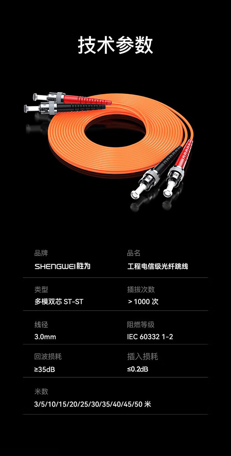 勝為ST/UPC-ST/UPC多模雙芯光纖跳線