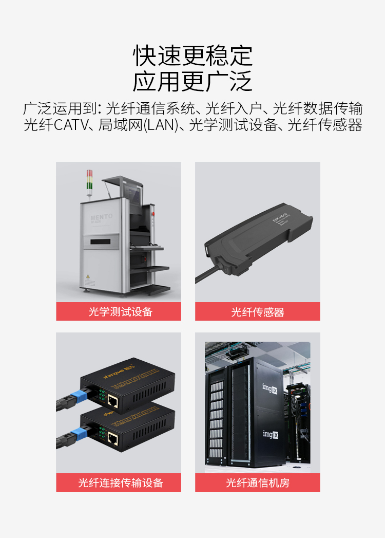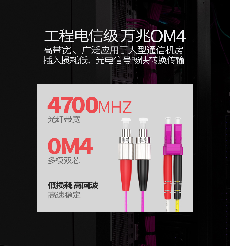品質(zhì)散件,環(huán)保堅固穩(wěn)定,耐用不變形、不斷裂、防脫落設(shè)計。插入損耗變化量<0.30db,低煙無鹵外被、使用舒心、防拉抗拽性能好、環(huán)保耐用。4700MHZ光纖帶寬,傳輸更快!