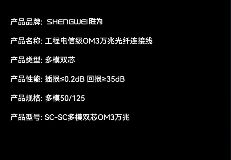 品名:工程電信級(jí)OM3萬兆光纖連接線