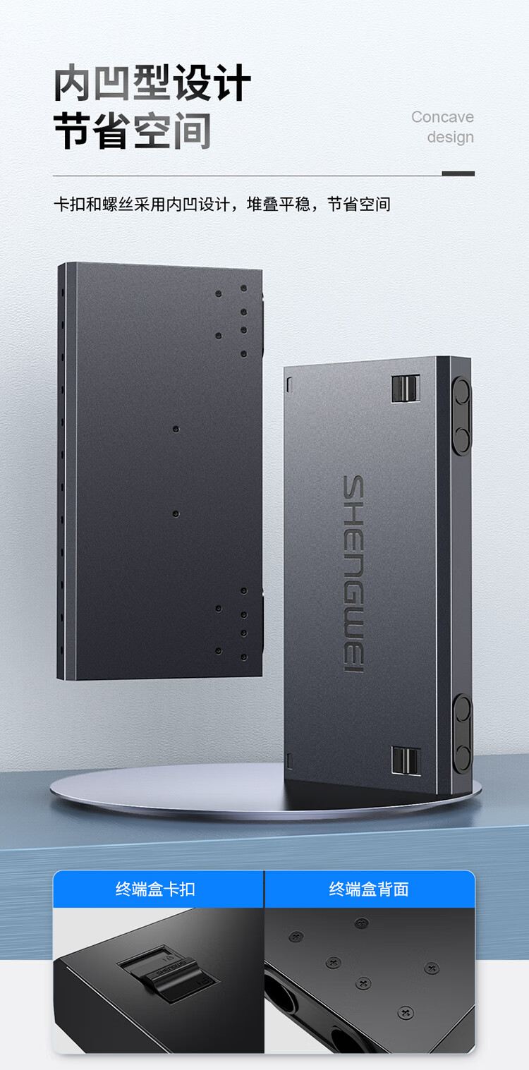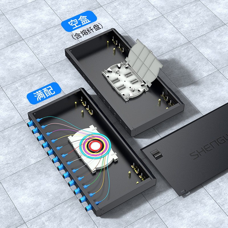 加厚加強冷軋板材質(zhì), 抗壓耐沖擊持久使用不變形, 承重力強。采用黑色環(huán)氧靜電噴塑烤漆工藝, 高度耐磨耐腐蝕不沾指紋, 質(zhì)感好。采用低損配件, 減少信號傳輸損耗;卡扣和螺絲采用內(nèi)凹設(shè)計, 堆疊平穩(wěn), 節(jié)省空間;安裝快捷,掛孔設(shè)計;熔接盤內(nèi)部結(jié)構(gòu)堅固緊密, 安裝光纜/光纖條理分配盤纖與固定, 有效保護光纖不受損傷以及控制彎曲半徑保證信號穩(wěn)定傳輸。