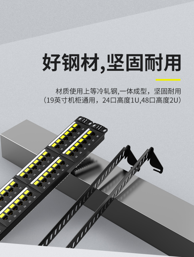 勝為六類配線架,模塊化管理,材質(zhì)使用上等冷軋鋼板,一體成型,堅(jiān)固耐用,(19英寸機(jī)柜通用,24口高度1U,48口高度2U)