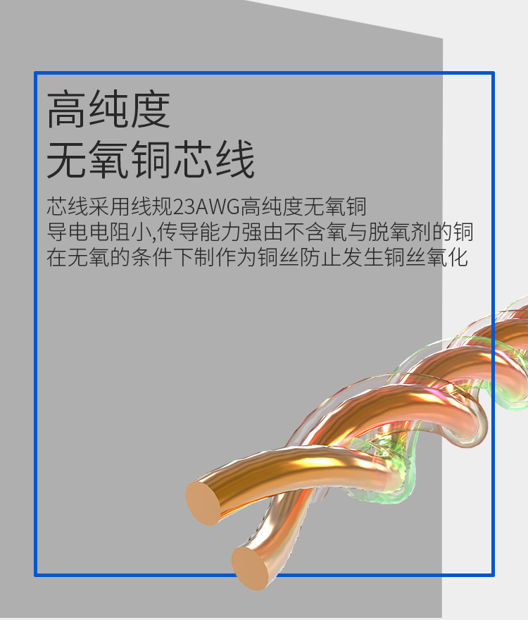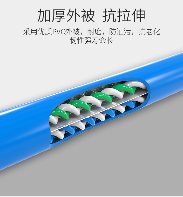 無(wú)氧銅芯,嚴(yán)選23AWG標(biāo)準(zhǔn)無(wú)氧銅芯,傳輸阻抗低;采用PVC環(huán)保外被,柔韌抗老化;八芯雙絞,穩(wěn)定抗干擾,每?jī)筛€芯相互絞合,減少信號(hào)間的互相干擾,保障信號(hào)傳輸?shù)姆€(wěn)定性。
