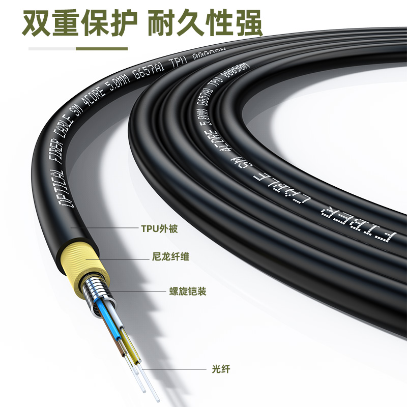三擋手速調節(jié)/帶拉桿/滑輪;螺旋金屬鎧裝,有效保護光纖不受損傷;高品質TPU外被防水性好,防曬且抗拉伸抗壓抗彎,低煙無鹵環(huán)保性好,高品質插芯,插損低。