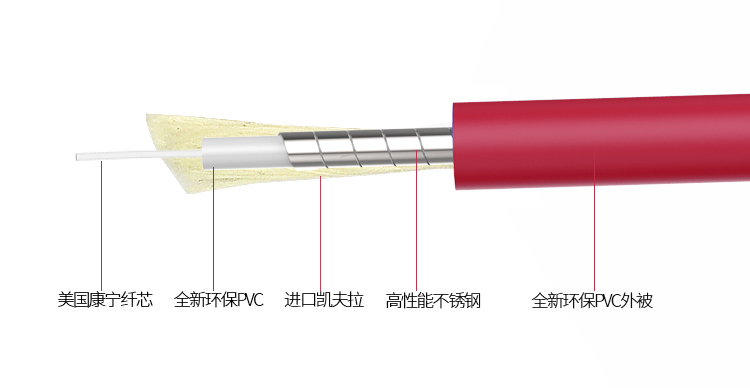 高抗壓鋼絲保護(hù),外圈有鋼絲圈,做成管狀,有效保護(hù)內(nèi)層纖芯受損,防止踩踏、折損、老鼠咬斷等機(jī)械性損傷。