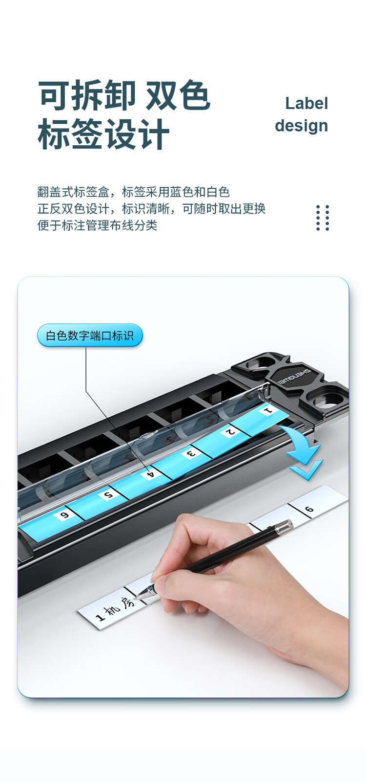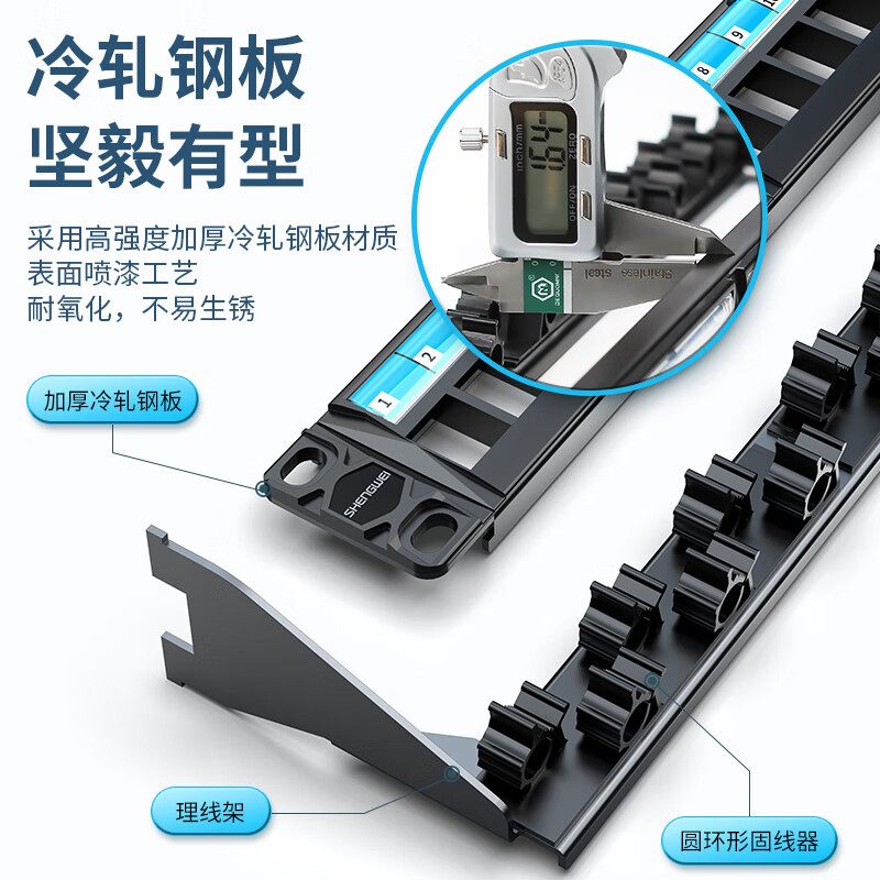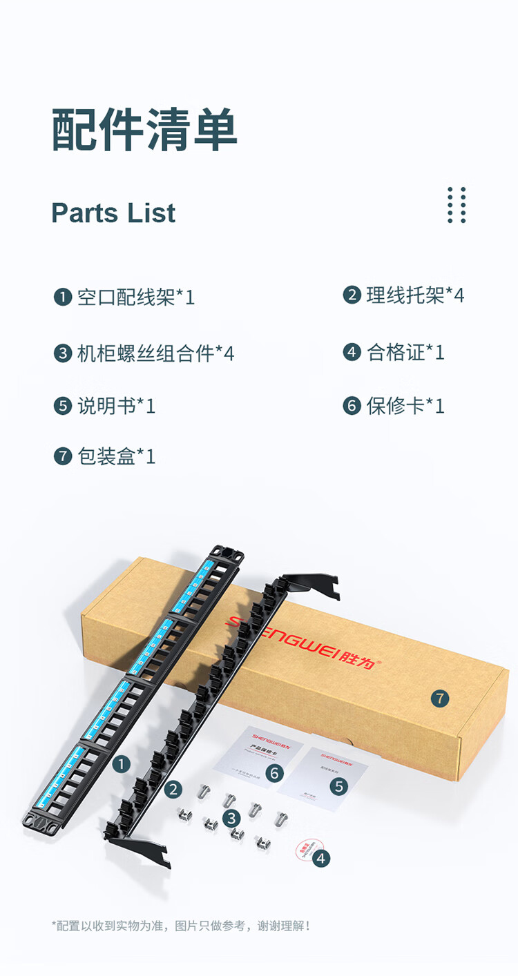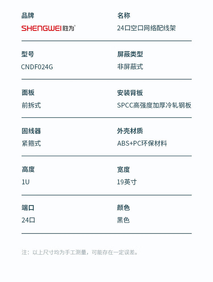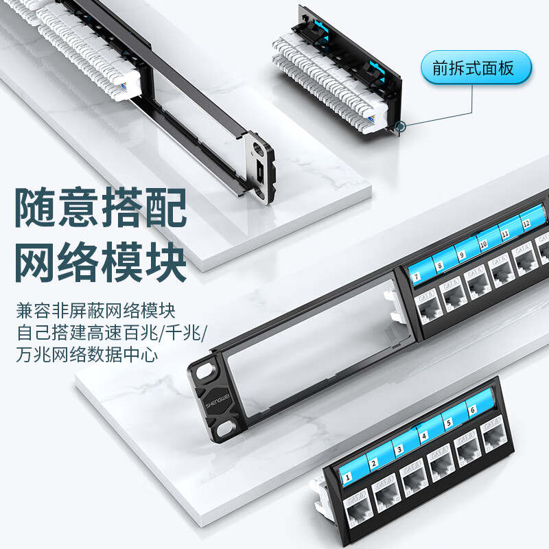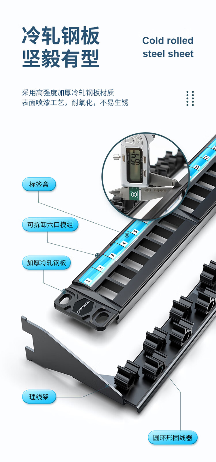 24口空口網(wǎng)絡(luò)配線架,適用于19英寸標(biāo)準(zhǔn)機(jī)柜,DIY模塊自由組裝,非屏蔽前拆式,加厚冷軋鋼板,固定裝置,通用24端口,通用標(biāo)簽,使用方便。