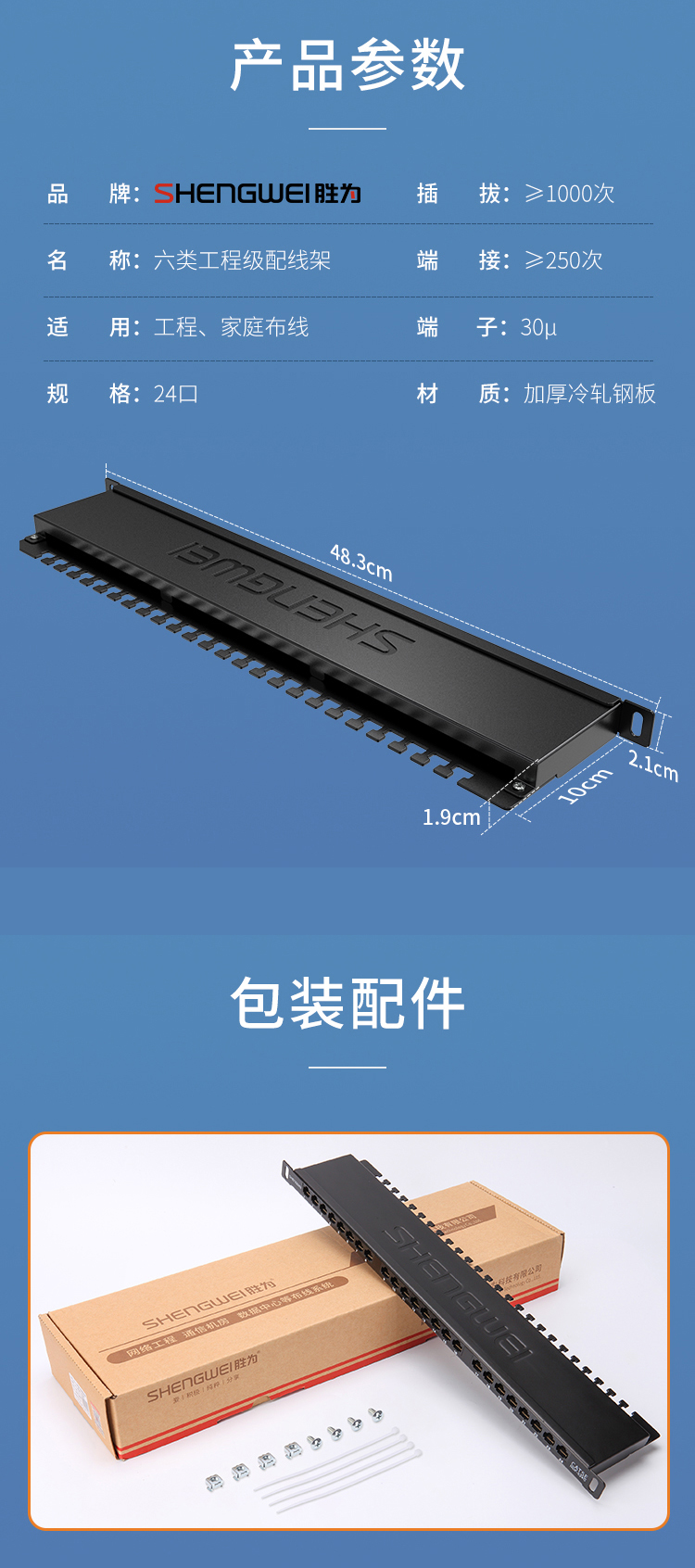 加厚冷軋鋼架,牢固不變形,連接不松動(dòng),采用加厚冷軋板打造,一體成型,堅(jiān)固耐用,附有T568A/T568B通用打線標(biāo)識(shí),滿足多類布線要求。
