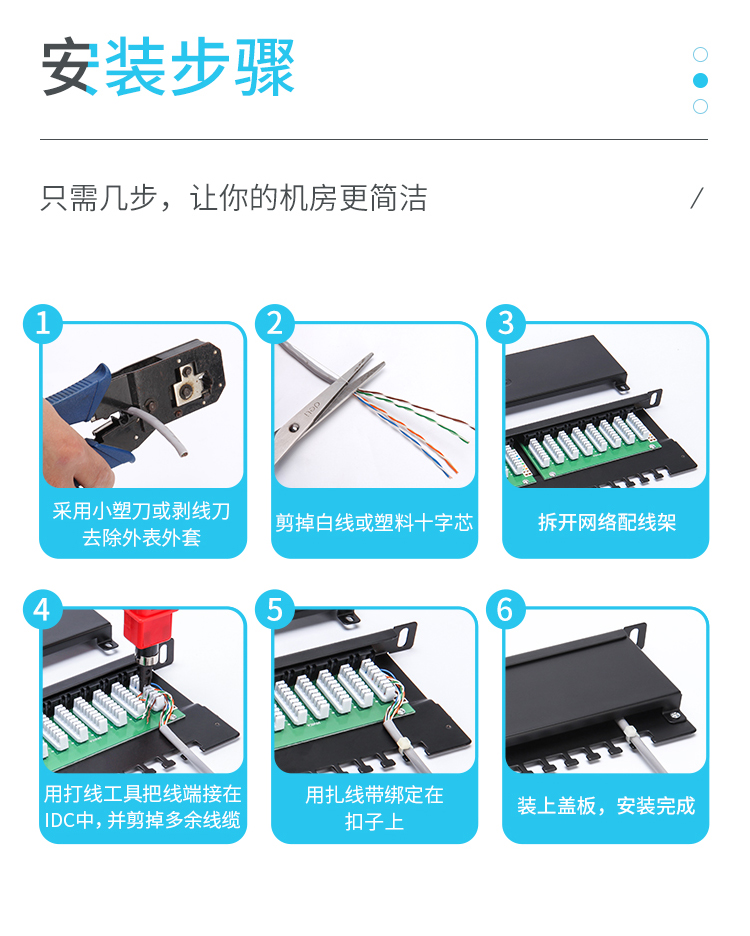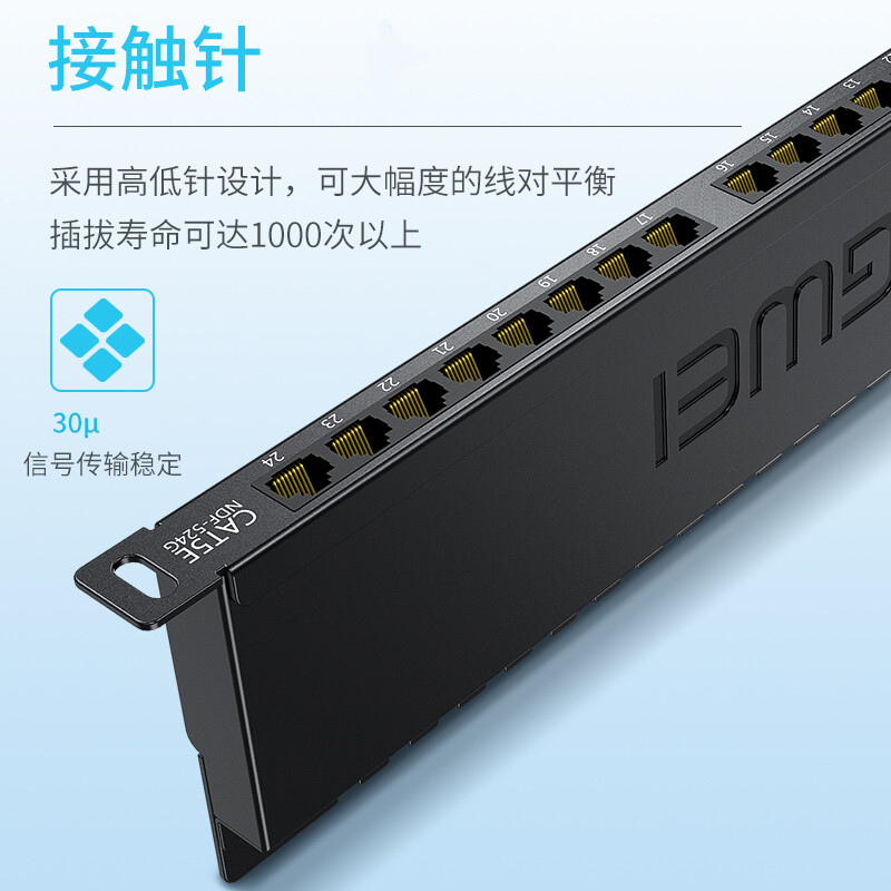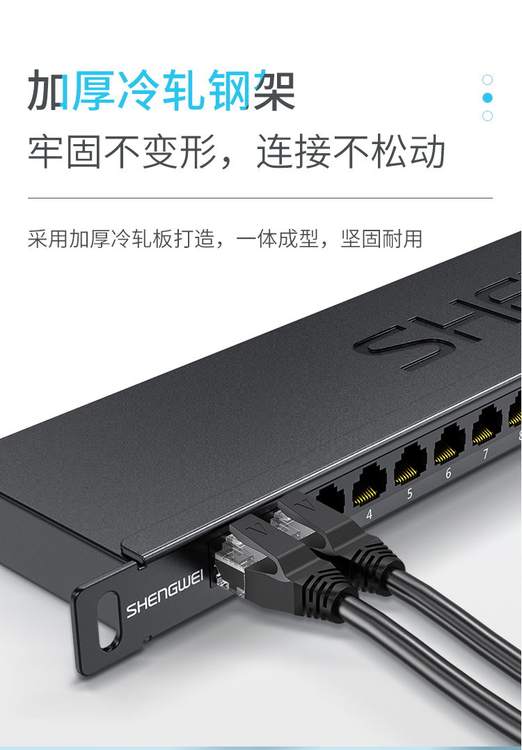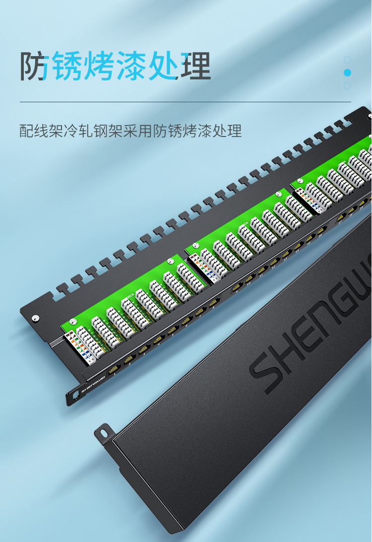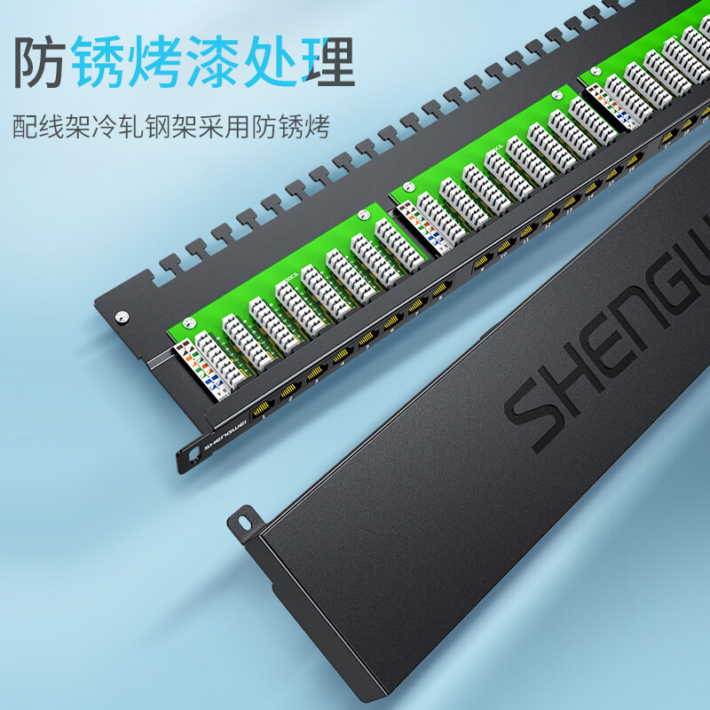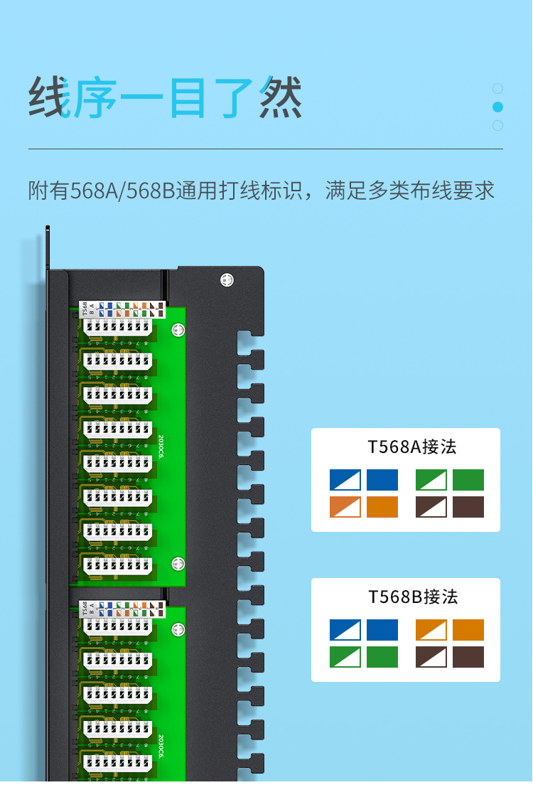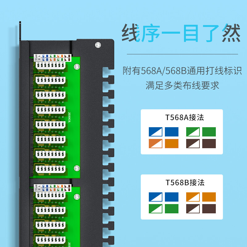 加厚冷軋鋼架,牢固不變形,連接不松動,采用加厚冷軋板打造,一體成型,堅固耐用,附有T568A/T568B通用打線標(biāo)識,滿足多類布線要求。