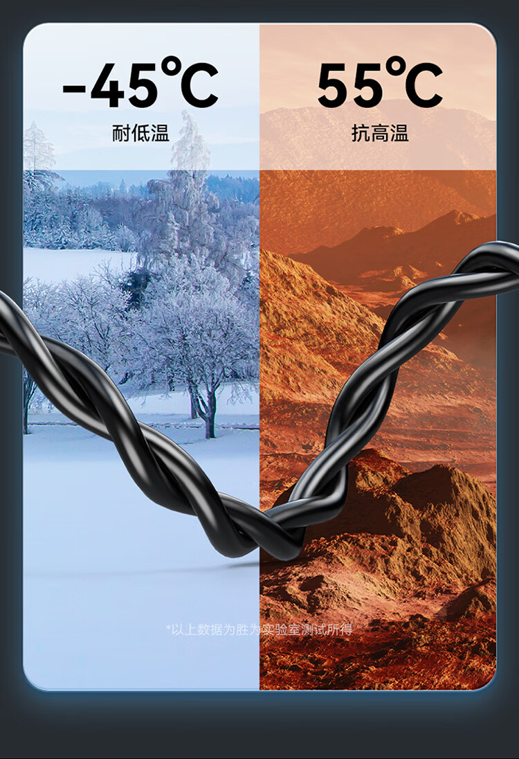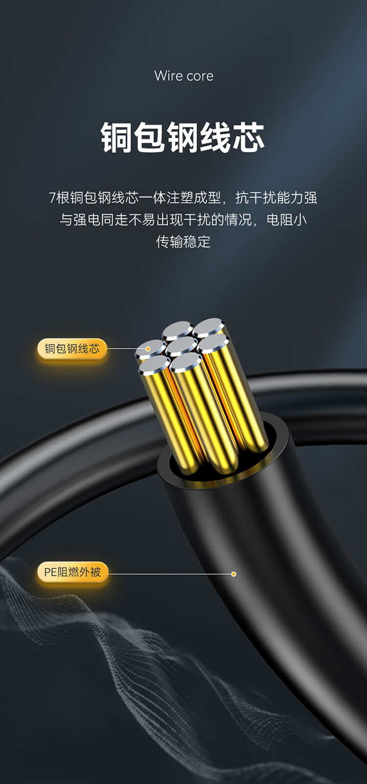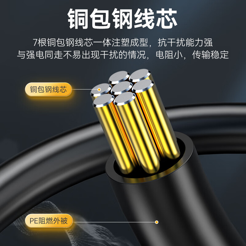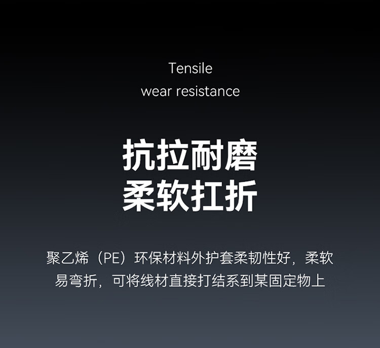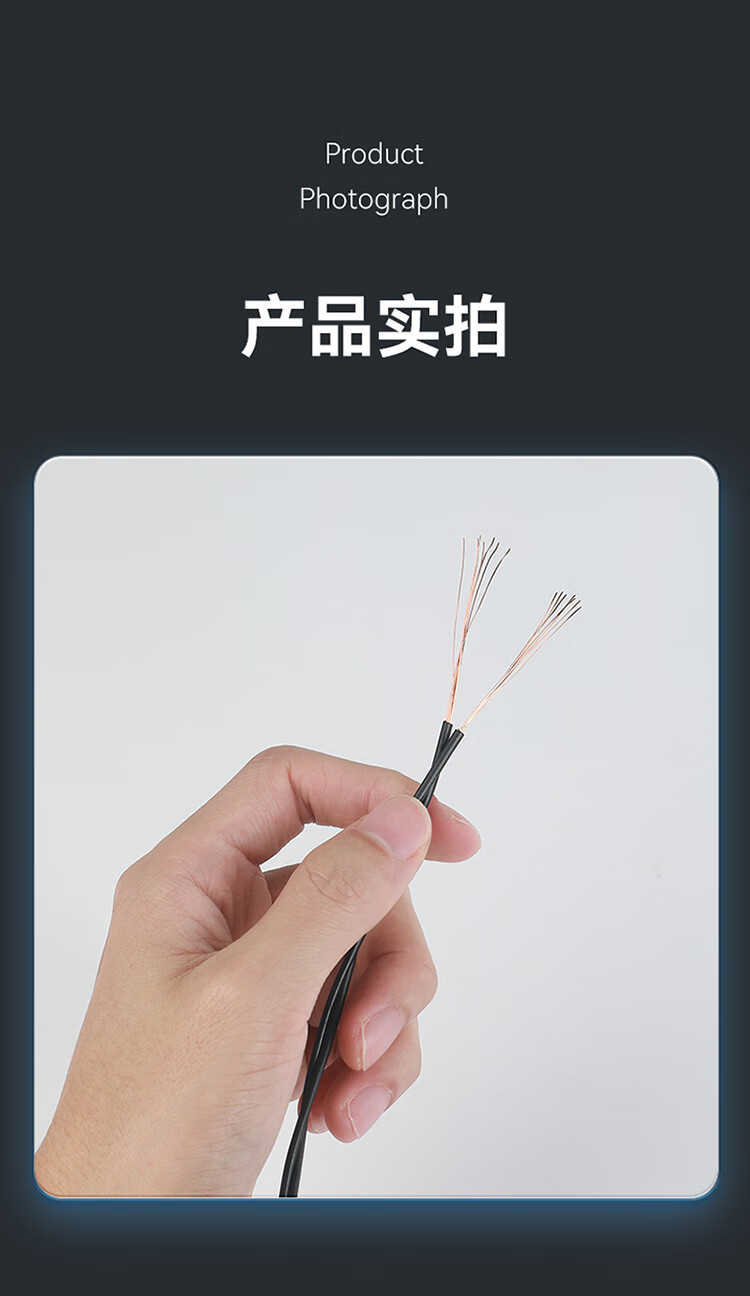 銅包鋼線芯,2芯雙絞結(jié)構(gòu),抗干擾能力強(qiáng),與強(qiáng)電同走不易出現(xiàn)干擾的情況,傳輸更穩(wěn)定;環(huán)保護(hù)套防水防潮,阻燃性好、耐高低溫,可將線材直接打結(jié)系到某固定物上,柔軟易彎折。百米架空跨距無需使用鋼絲等輔助材料,直接拉拽,強(qiáng)韌不易斷。