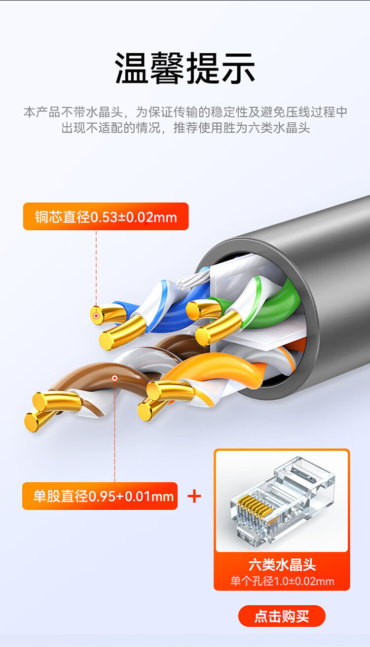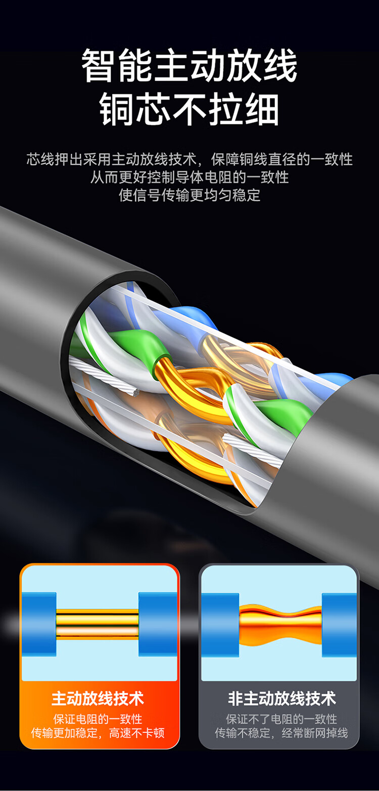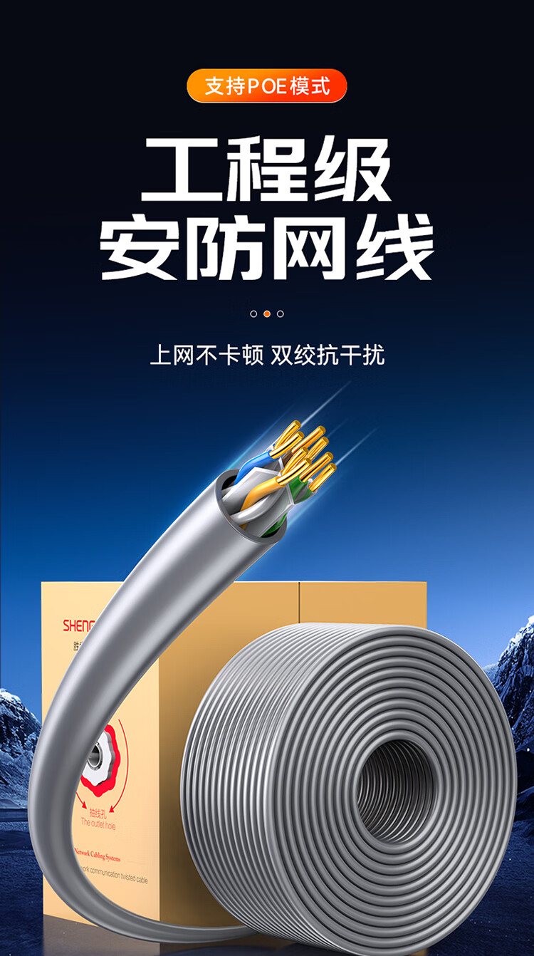 智能主動(dòng)放線,芯線押出采用主動(dòng)放線技術(shù),保障銅線直徑的一致性,從而更好控制導(dǎo)體電阻的一致性,使信號(hào)傳輸更均勻穩(wěn)定;無氧銅芯,嚴(yán)選24AWG標(biāo)準(zhǔn)無氧銅芯,傳輸阻抗低;采用PVC環(huán)保外被,柔韌抗老化;八芯雙絞,穩(wěn)定抗干擾,每?jī)筛€芯相互絞合,減少信號(hào)間的互相干擾,保障信號(hào)傳輸?shù)姆€(wěn)定性,支持監(jiān)控,POE供電,無需多余布線,一根網(wǎng)線解決監(jiān)控供電問題。