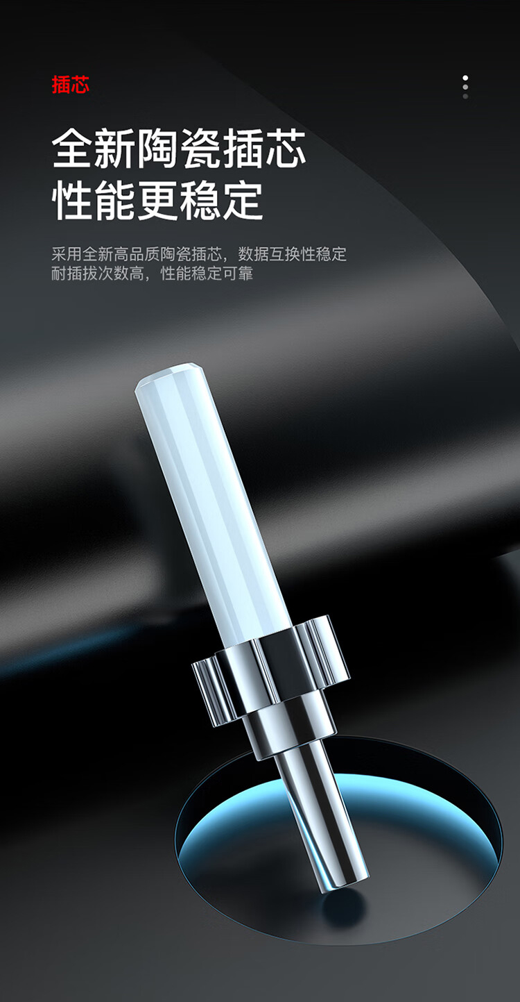 一體工藝,長(zhǎng)線尾保護(hù),堅(jiān)固耐用不斷裂;采用全新高品質(zhì)陶瓷插芯,數(shù)據(jù)互換性穩(wěn)定