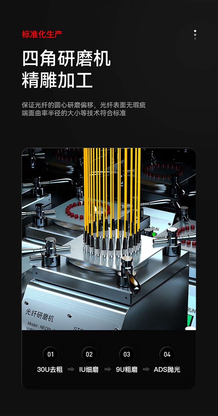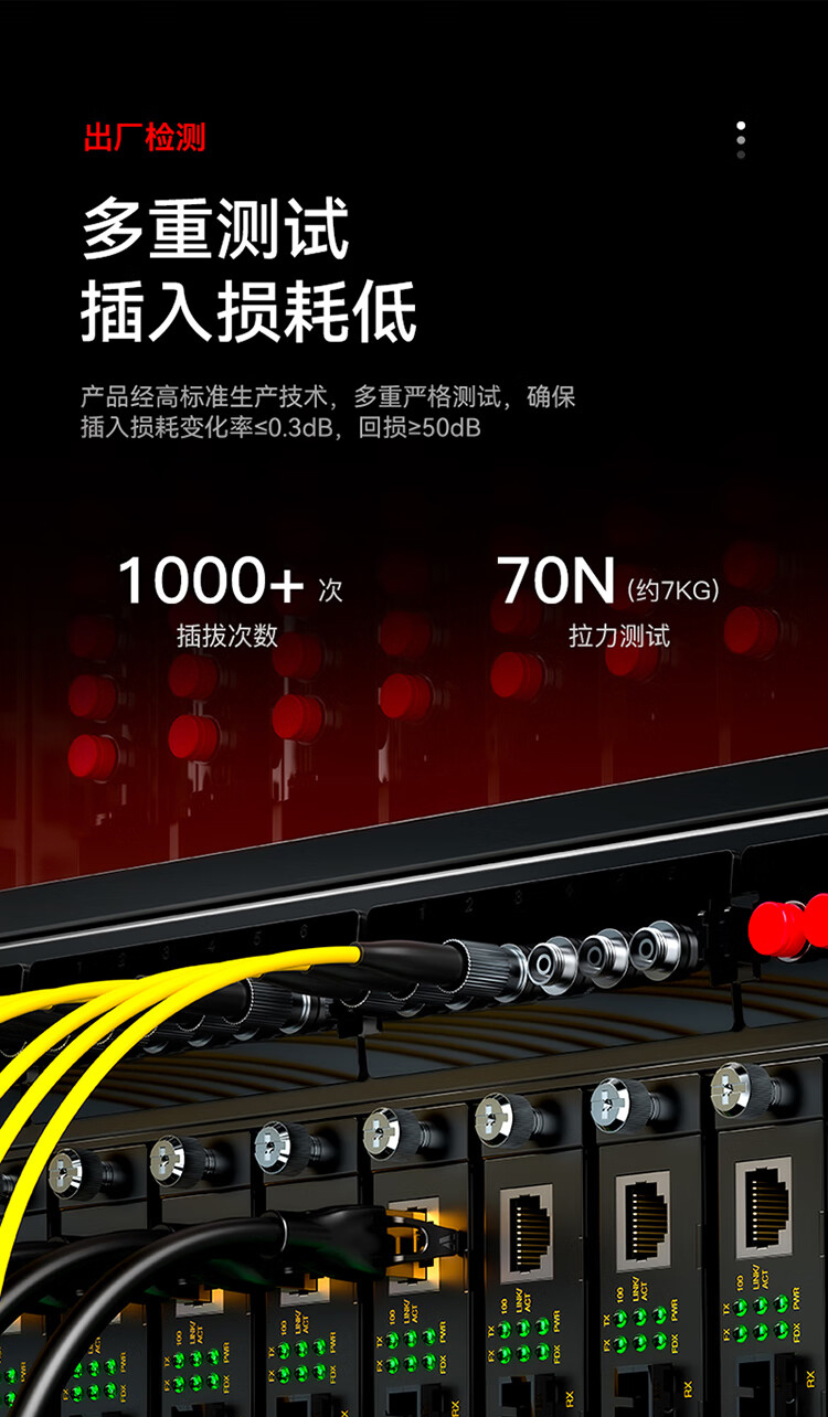 插入損耗低,產(chǎn)品經(jīng)高標(biāo)準(zhǔn)生產(chǎn)技術(shù),多重嚴(yán)格測(cè)試,確保插入損耗變化率<0.30dB,回?fù)p≥50dB