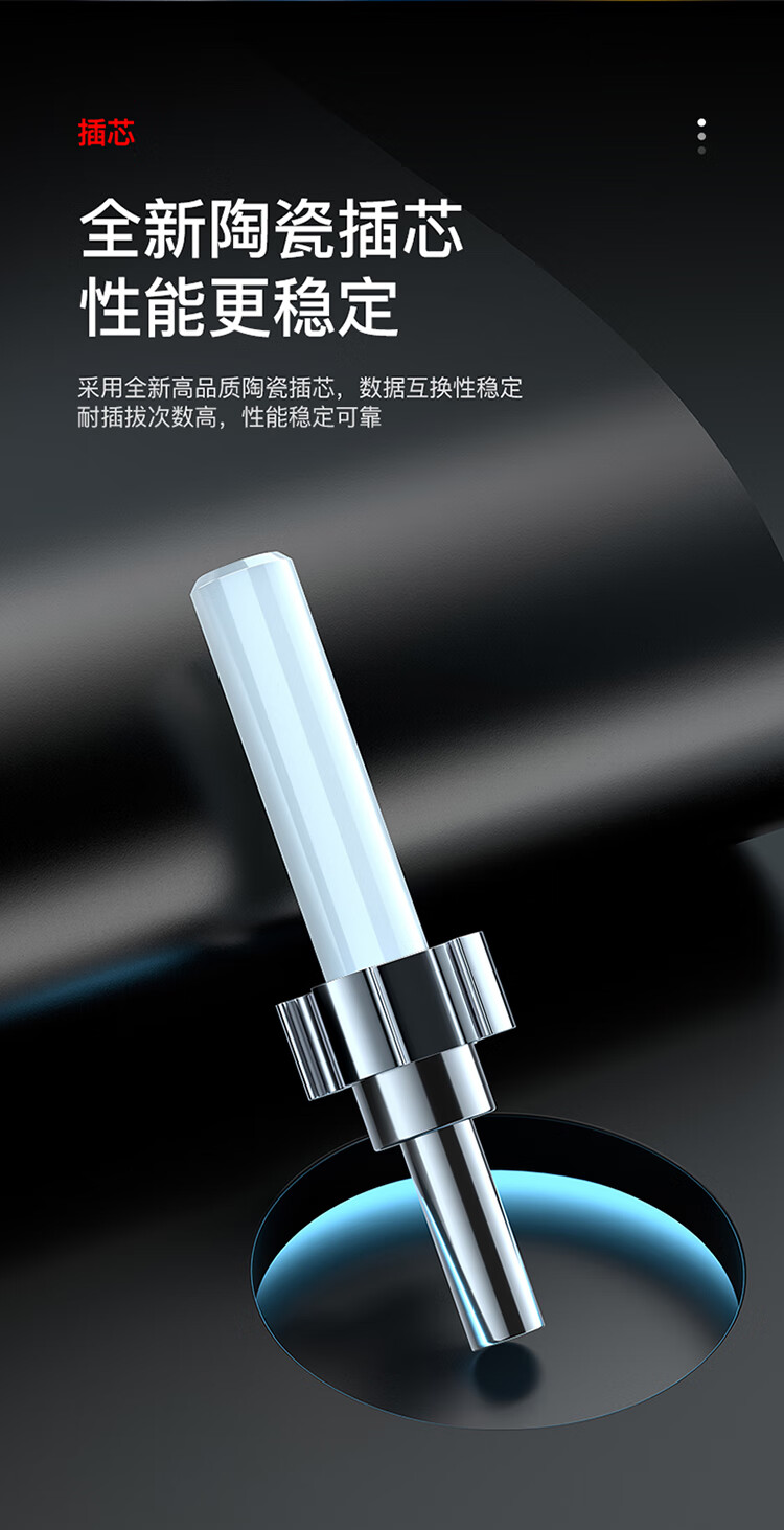一體工藝,長線尾保護,堅固耐用不斷裂;采用全新高品質(zhì)陶瓷插芯,數(shù)據(jù)互換性穩(wěn)定